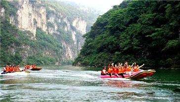 水路的漂流更是极具魅力,全长13.2公里的漂流河道分上下两段,上段6.4公里的惊险刺激漂流,急滩上飞舟,热情四射,碧水迂回,两岸绝壁林立,人在水中漂,忙里偷闲观赏岩棺群。下段6.8公里为静水里的休闲漂流,水深70—80米,碧波悠悠,两岸绝壁相对耸立,共有48座山峰,每座山峰姿态各异,植被达100多中以上,坐在12座的环保双浮筒漂流艇上,沐浴着清新自然的山风,可沿途观赏笔峰石、望夫石、候王寨、百宵图、仙女沐浴等奇世美景,如在仙镜;可领略原始森林古树、香草、长藤、奇兽的神韵;可体味九畹溪电站、九畹溪大桥等现代宏伟的气势;可探索800米青钟地缝的幽静惊险。宏伟的三峡大坝、雄浑的崆岭险滩、威武的将军岩,将一解峡江山水的雄奇与秀美;壁立的问天简、沧桑的巨鱼坊、神秘的古悬棺,一展巴楚文化的神韵。